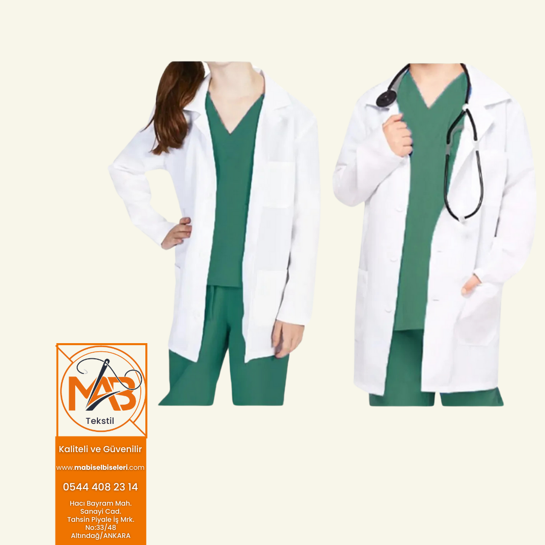 MAB İş Elbiseleri olarak sunduğumuz Çocuk Doktor Önlüğü, küçük doktor ve hemşire adayları için özel olarak tasarlanmıştır. Yüksek kaliteli malzemesi ve rahat kesimi ile çocukların konforlu ve keyifli bir şekilde rol yapma oyunları oynamasını sağlar. Gerçekçi tasarımı sayesinde hayal güçlerini geliştirirken eğlenceli vakit geçirmelerine yardımcı olur.